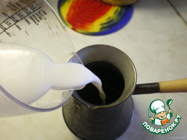 В одну часть добавить ванильную эссенцию, а в другую - 1 ст. л. кофейного напитка, следя за тем, чтоб не попала гуща.