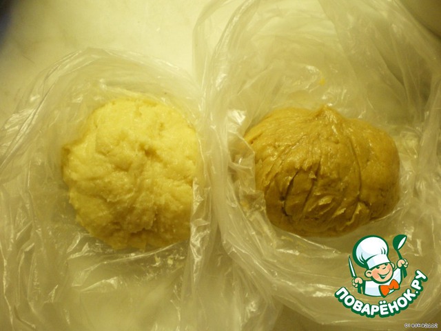 Завернуть обе части теста в плёнку и положить на 1 час в холодильник.