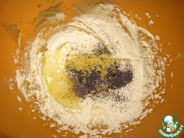 Добавляем мак, цедру лимона, ванилин, сок лимона, яйцо.