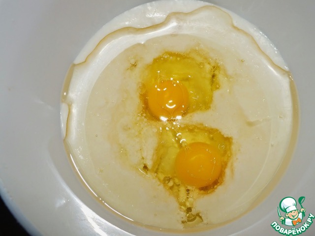 Простоквашу (кефир) соединить с маслом, солью и яйцами.