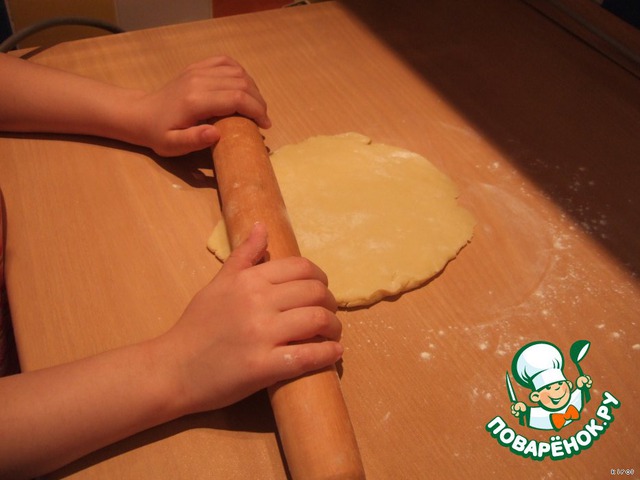 Раскатываем тесто (можно немного подсыпать муки) в пласт толщиной 4 мм.