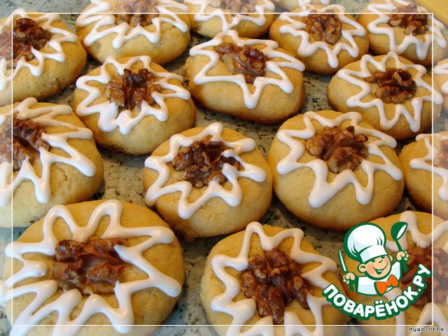 Рассыпчатое нежное печенье с орехом и очень нарядное.