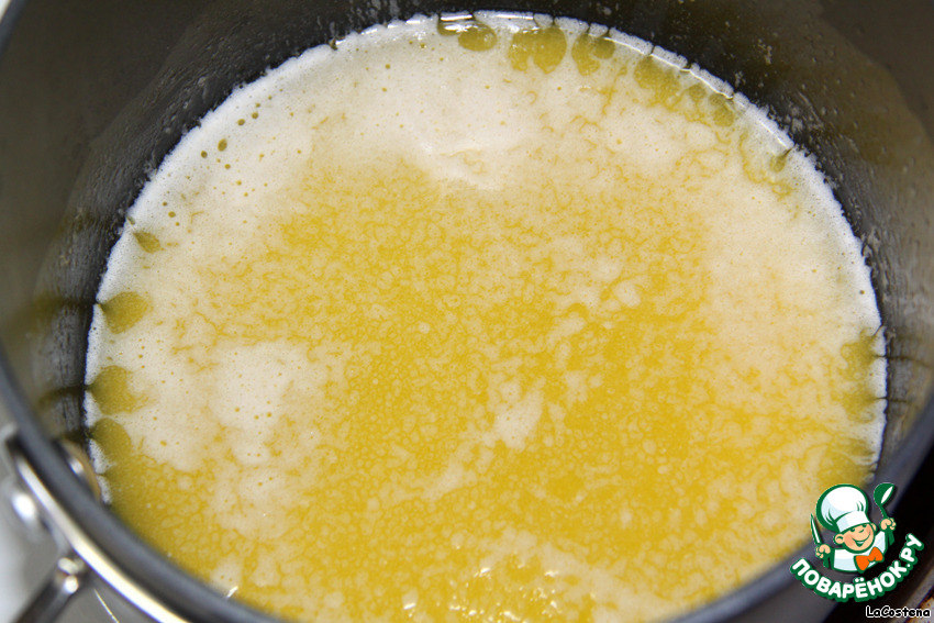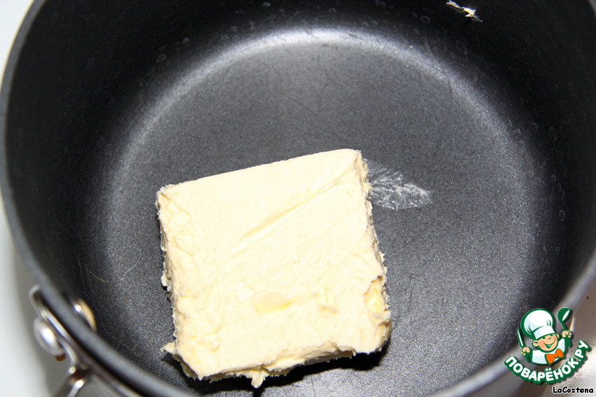 Духовку включить на 180 градусов. В кастрюлю выложить сливочное масло.