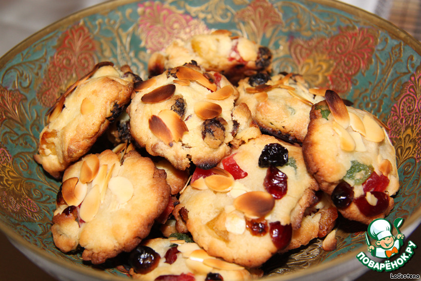 | Хрустящее печенье с цукатами, вишней и миндалем, которое готовится за 15 минут. |