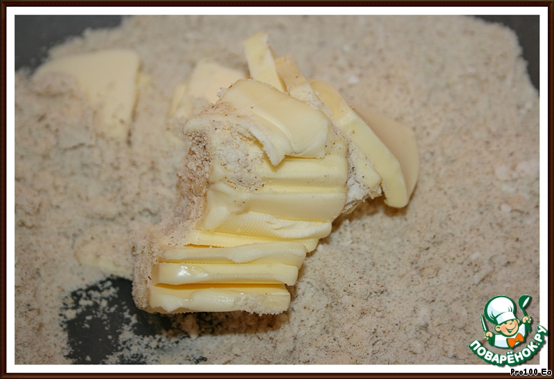 2. К ореховой муке добавить кубики масла и руками довести до однородной массы.