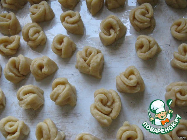 Сложить на противень и по желанию для украшения положить в центр миндаль.