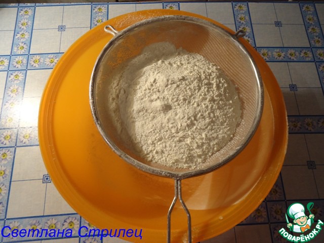 Муку просеять с разрыхлителем и сахарной пудрой.