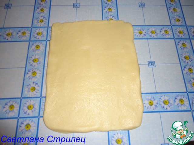 Из большей части теста раскатываем прямоугольник толщиной примерно 1 см.