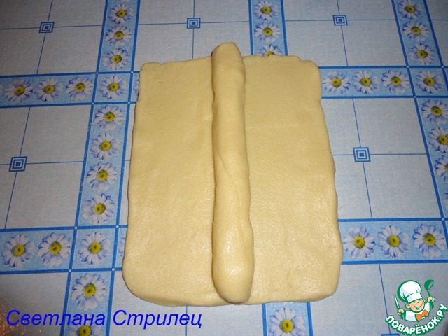 От белого теста отделяем одну четвертую часть, формируем жгутик.