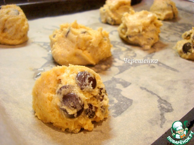 Выложить тесто порциями (8-9 штук) на противень, застеленный пергаментом. Сразу хочу сказать, что они при выпечке очень сильно растекаются, поэтому расстояние между ними должно быть очень приличным! Выпекать в заранее разогретой до 190 градусов духовке 10-15 минут. Я чуть-чуть передержала, у Кристофа они более светлые.