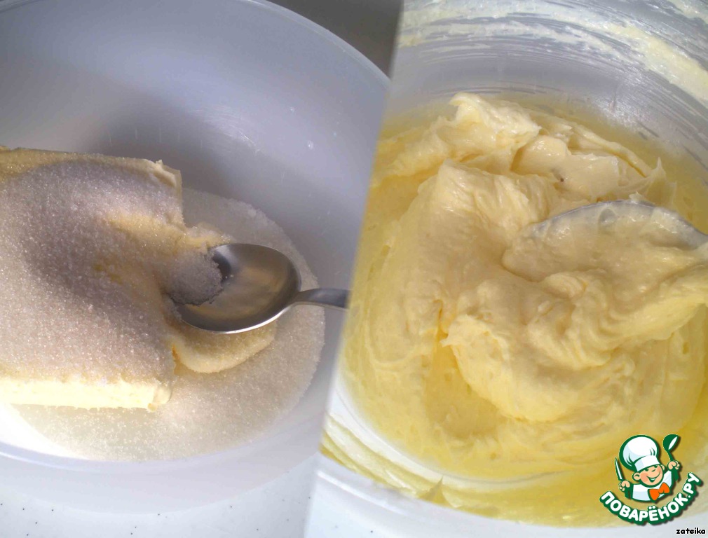 Размягченное масло как следует растираем с сахаром.