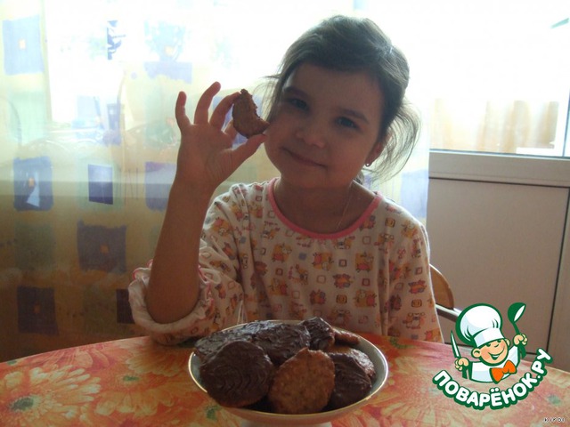 Приятного аппетита! Нынче главным исполнителем была Есёна, поэтому печенье вышло несколько великоватым и шоколад она не просто намазала, а наложила приличный слой :-)