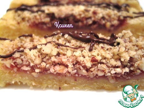 И распределяем измельчённые орехи по малиновому наполнению, слегка вдавив их рукой. Возвращаем в духовку ещё на 15-ть минут.