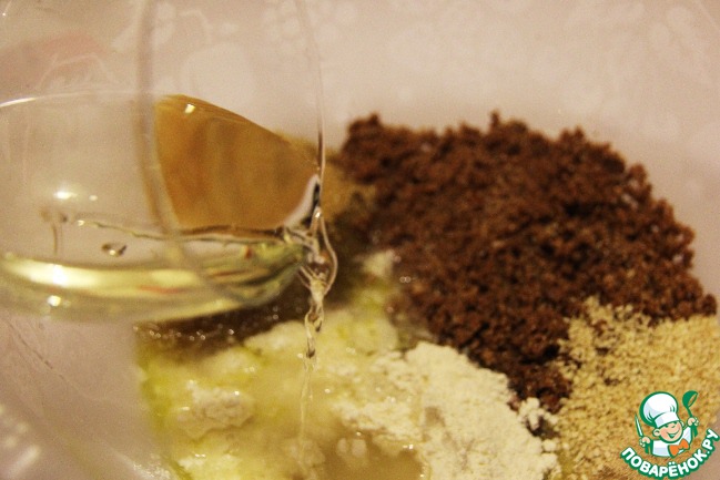 Тонкой струйкой вливаем мартини. Замесить руками тесто.