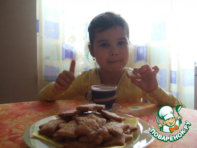 В первоисточнике предлагали готовить его сплошным пластом (около 50 мин), а потом очень осторожно нарезать на печенье, но мы решили сразу сделать печеньки, тогда и время выпечки уменьшилось :-)и перекладывать удобней , да и резать не пришлось :-) Приятного аппетита!