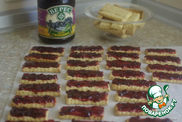 Готовое печенье остудить и смазать конфитюром, смешанным с небольшим количеством лимонного сока.