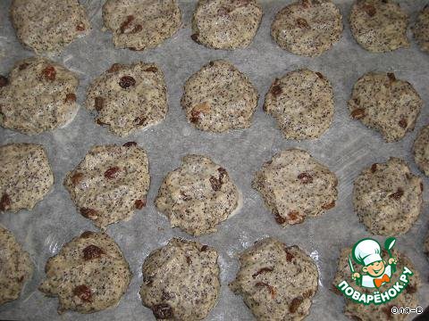 Столовой ложкой смоченной в воде выкладывать тесто на небольшом расстоянии друг от друга, примерно по пол ложки, затем смоченными руками слегка приплюснуть каждое печенье. Выпекать до легкого золотистого цвета.