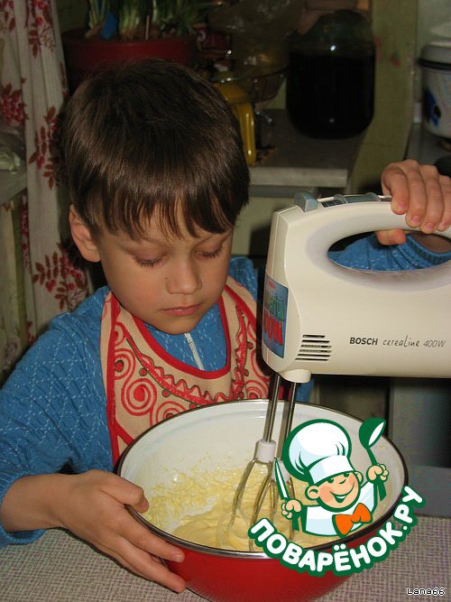 Хорошенько ещё раз перемешать миксером на средней скорости. Лёше это даётся с трудом. Уж больно миксер тяжеловат :-)