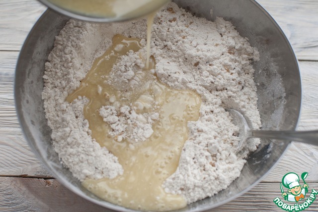 Перемешайте. Должно получиться нежное липковатое тесто.