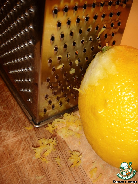 После чего добавляем подготовленную ваниль, цедру лимона и творог, предварительно слив с него сыворотку. Всё снова перемешиваем, но долго уже не взбиваем.