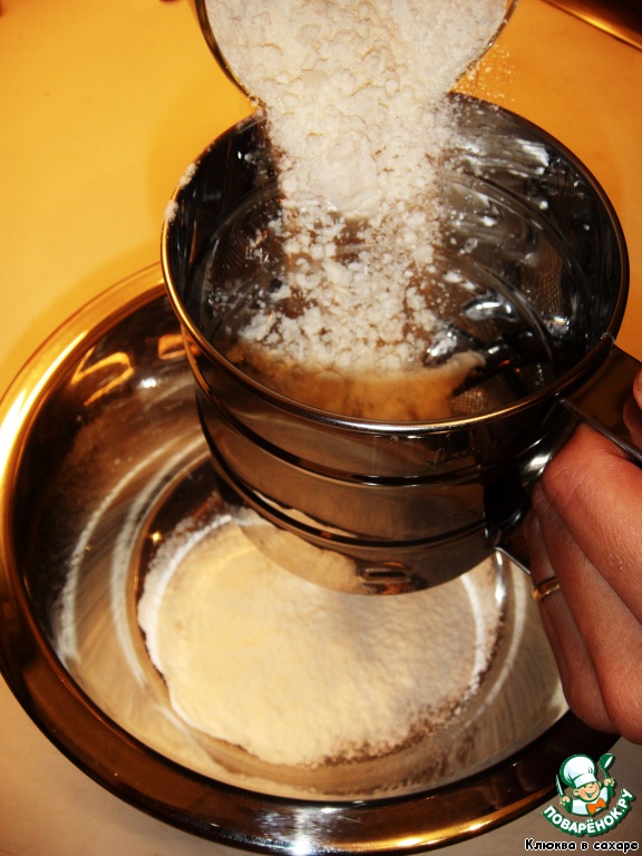 Следующим шагом просеиваем муку и добавляем к ней сухие дрожжи, соду и щепотку соли.