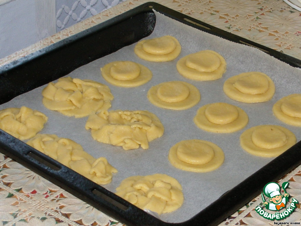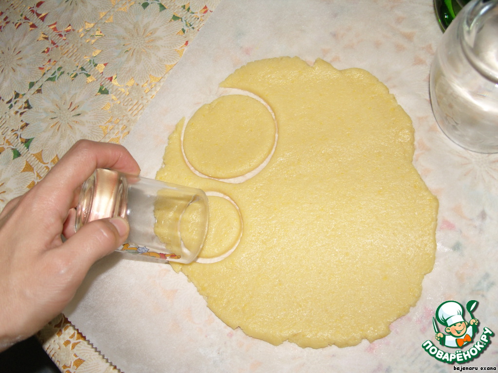 Но я молодая мама, у меня прекрасная пятимесячная дочка, и хотела сделать печенье, пока она спит. Плести печенье, особенно если тесто хрупкое - это долго. Поэтому я взяла два стакана, один побольше, другой поменьше и ими сделала кружочки. Эти кружочки сложила один на другой.