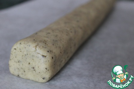 Разделите тесто на 2 части. Каждый кусок скатайте в цилиндр диаметром 3 см. Оберните цилиндры в пергаментную бумагу и уберите в морозильник на 40 минут.