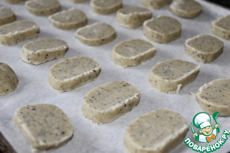 Разогрейте духовку на 180C. Застелите противень пергаментной бумагой. Разрежьте каждый цилиндр на диски шириной в 0,5 см. Уложите печенье на пергаментную бумагу на расстоянии 2 см друг от друга. Выпекайте 10-15 минут до светло-золотистого цвета. Остудите полностью на решетке.