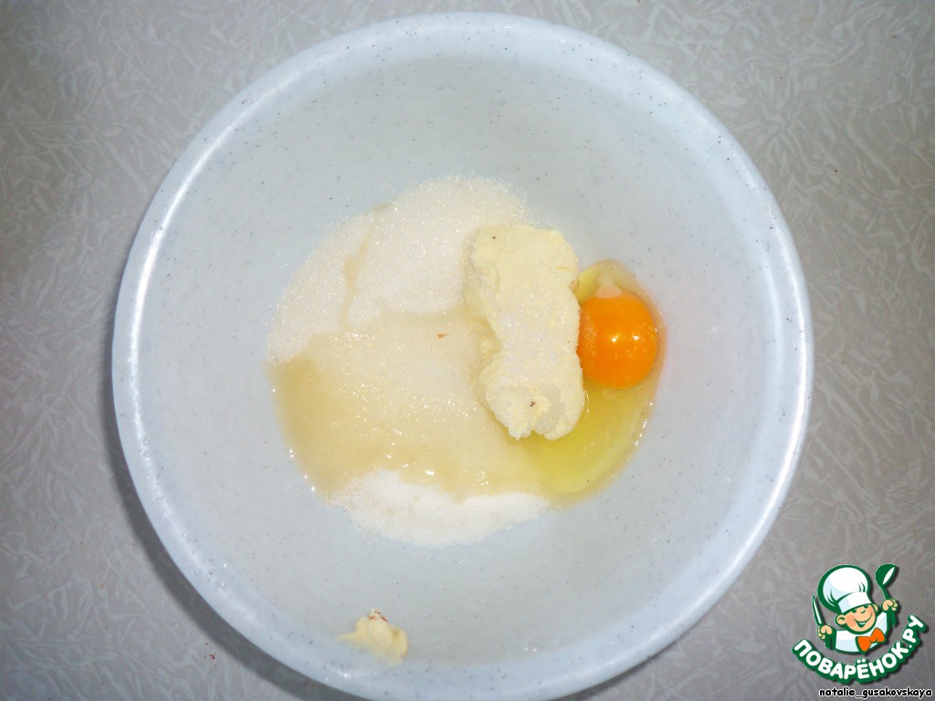 1. Смешать масло, яйцо сахар и ванильный сахар. Я мешала вилкой.