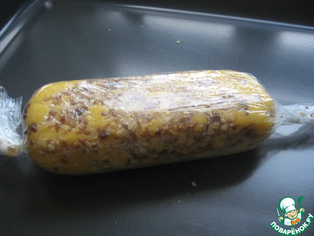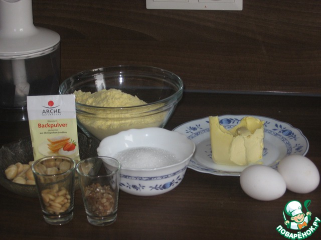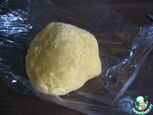Масло, сахар, яйца, кукурузную муку и разрыхлитель вымешиваем в гладкое тесто. Кладем в холодильник.