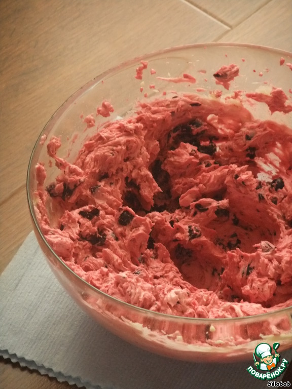 Пожалуй все, начнем. Масло комнатной температуры взбить с сахарной пудрой и ликером в пышную массу. Добавить ягоды.