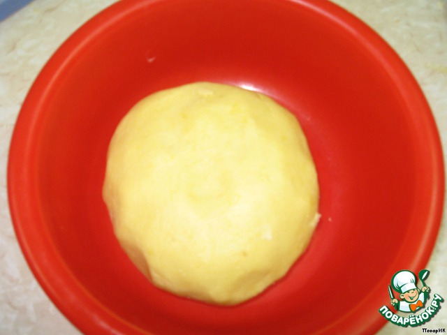 Муку просеять с сахарной пудрой + 1 желток + 2 чайные ложки холодной воды + масло кусочками - замесить тесто, желательно быстро,ч тоб не липло к рукам.