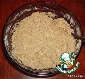 Добавляем муку с отрубями и семечками. Xорошо размешиваем.