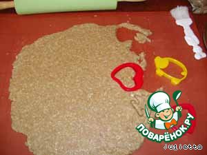Затем тесто раскатываем до толщины ~5-7 мм, вырезаем печенье с помощью специальных формочек или стаканом, или просто режем ножом на ромбы.