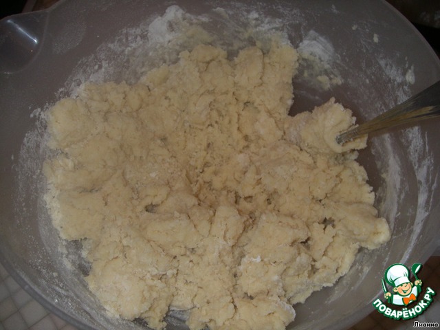 Добавить муку и замесить тесто. Тесто выдержать в холоде 20-30 минут (в морозилке).