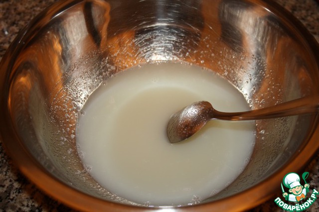 Подогреть молоко, растворить в нем сахар, немного остудить.