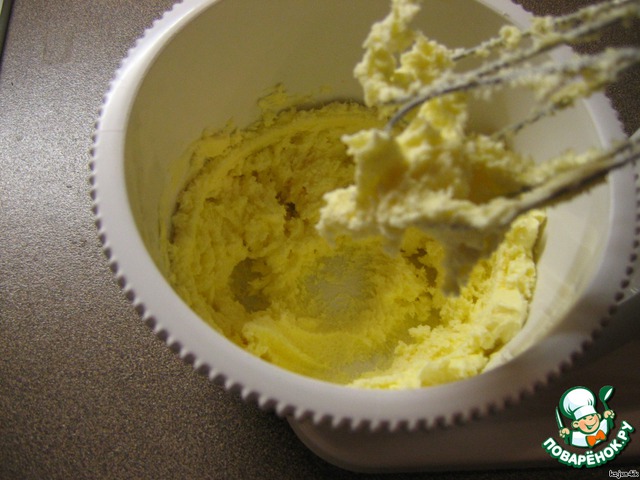 5. Затем добавьте в смесь с маслом и тщательно перемешайте миксером, а можно и ложкой.