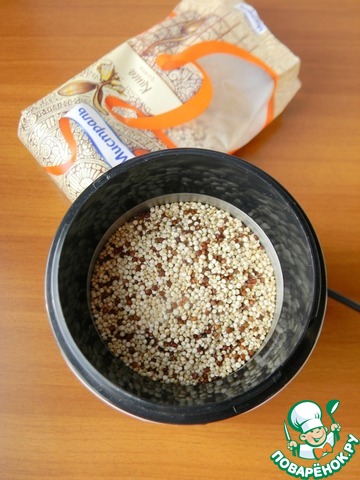 Киноа насыпать в кофемолку.