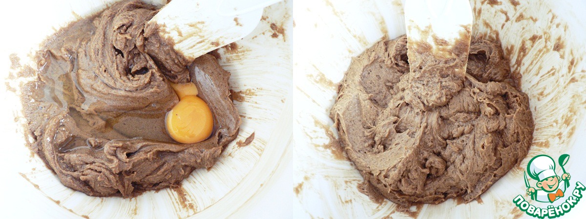 По одному ввести в масляную массу яйца, тщательно перемешивая.