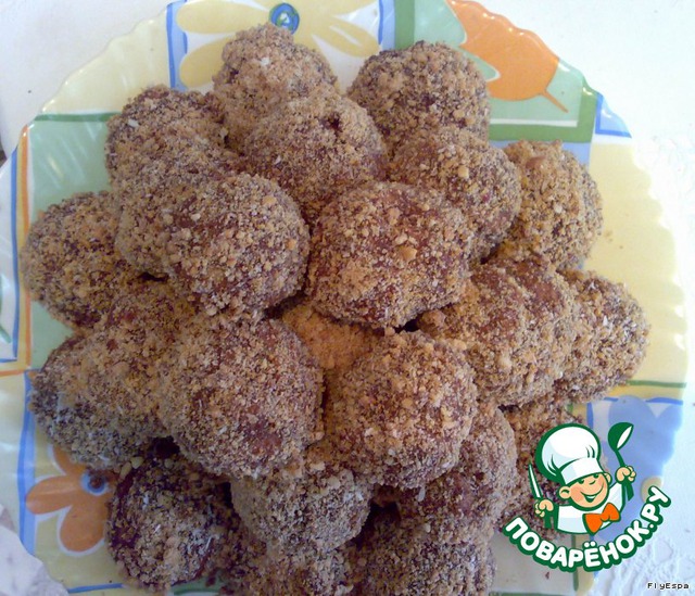 Готовые каштаны обмакиваем в глазурь и обваливыаем в посыпке, складываем на тарелочке и кушаем!