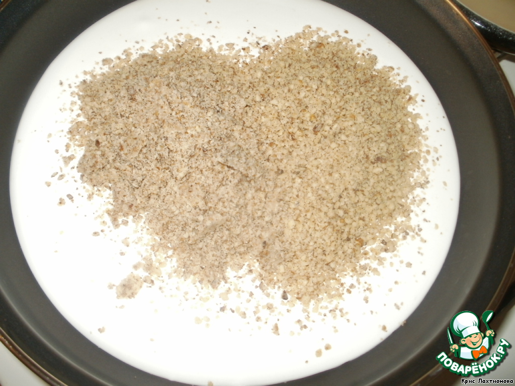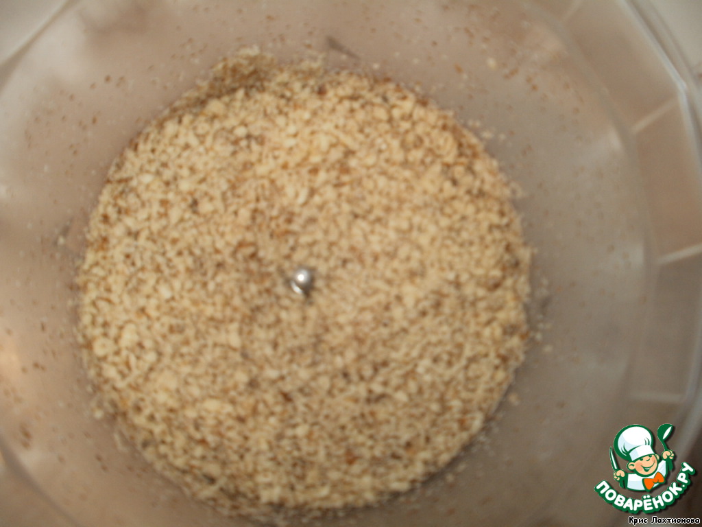 Орехи измельчить в крошку.