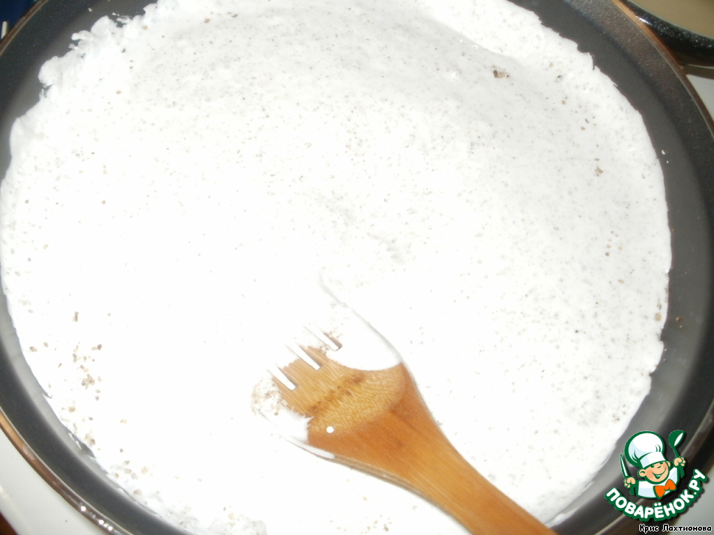 Нагреть хорошенько сковороду и вылить туда белковую массу...