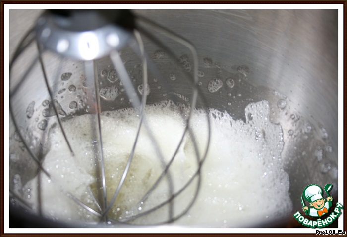 1. Взбить белки, миндальный экстракт и лимонный сок до мягких пиков.