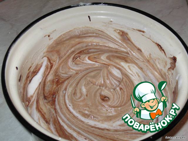 Растопить шоколад и осторожно ввести вилкой в безе.