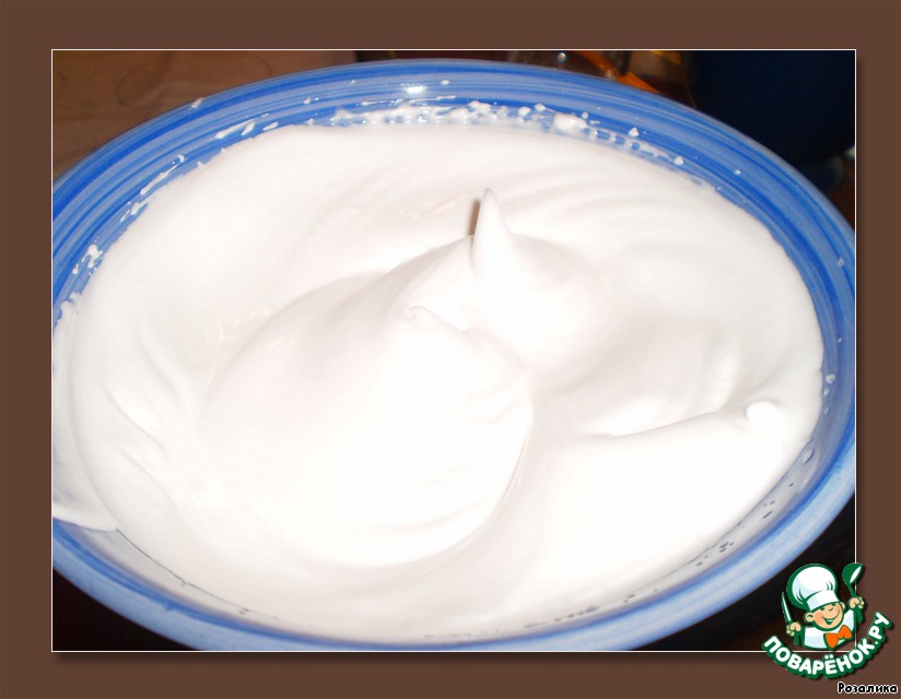 Взбить охлажденные белки в крепкую пену, добавляя сахар.