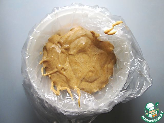 Соединяем миндально-сахарную и белковую массу легкими движениями снизу вверх, вращая миску по часовой стрелке. На этом этапе можете добавить в тесто немного красителя, если хотите окрасить печенье в какой-либо цвет. Правильно перемешенное тесто должно стекать с лопаточки широкой лентой. Не перестарайтесь, тесто должно сохранять объем! Готовое тесто перекладываем в кондитерский мешок с круглой насадкой большого диаметра или в полиэтиленовый пакет, после чего отрезаем у пакета уголок. Если форма вам не важна, можете отсаживать печенье с помощью чайной ложки.