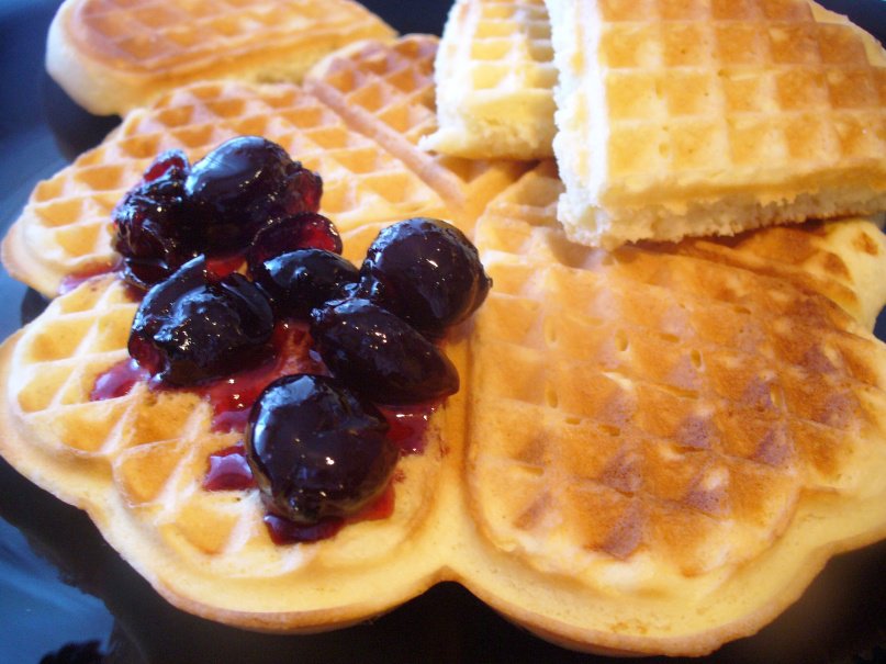 Массу аккуратно перемешиваем и выпекаем вафли согласно инструкции к вафельнице.