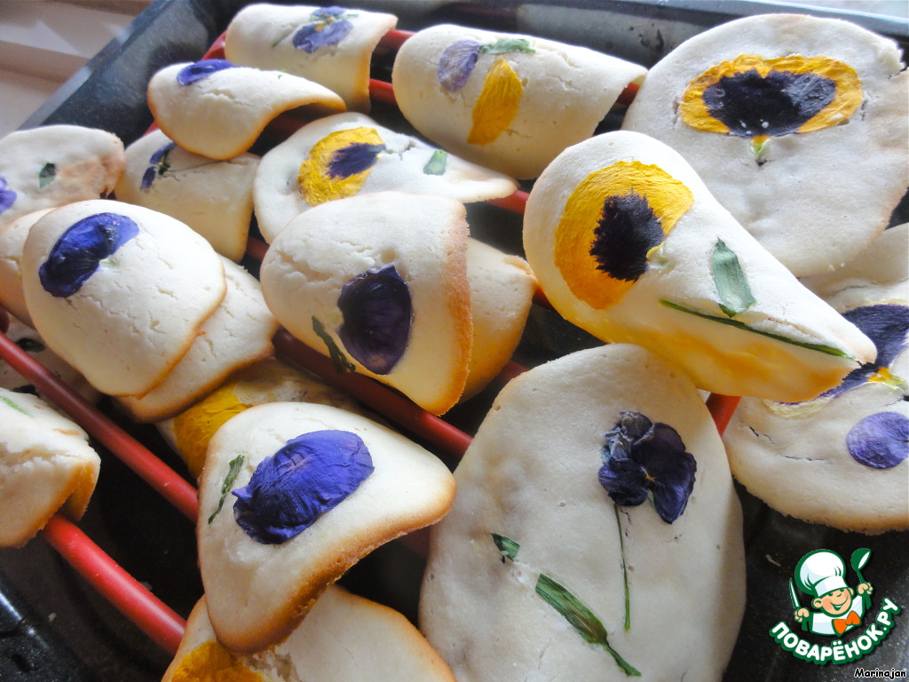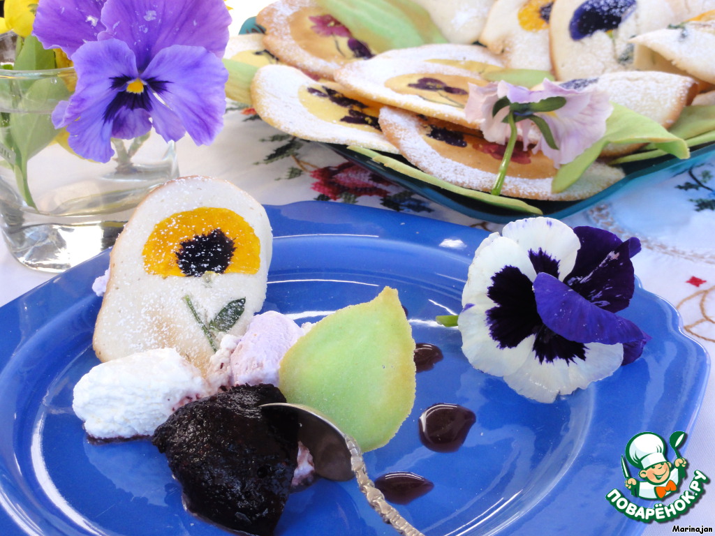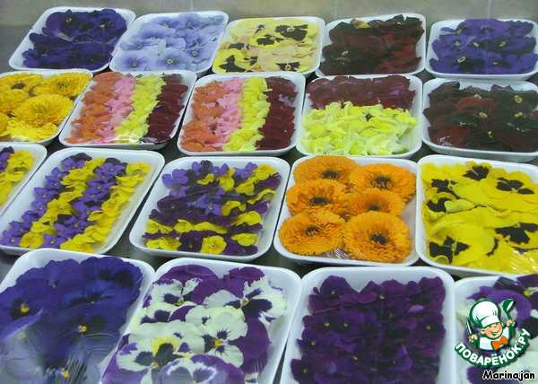Сверху по цветочку (предварительно их помыть и обсушить).