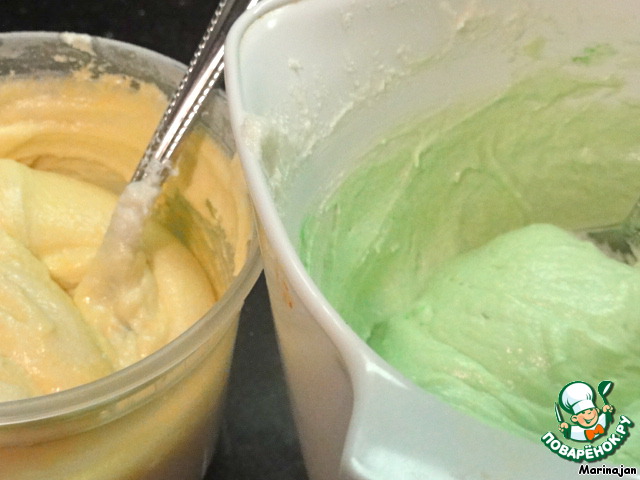 Белки взбить, добавить все ингредиенты. Смешать и замесить лопаточкой, чтобы не было комочков.