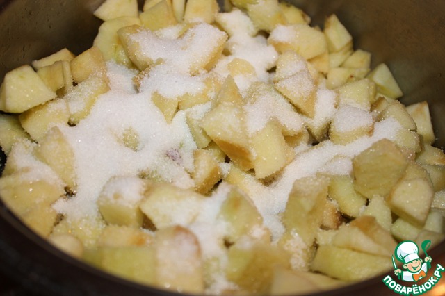Подаем с яблочным муссом. Яблочный мусс варим из 500 гр. очищенных от сердцевины и шкурки, яблок. Добавляем немного сахара, лимонного сока и воды.